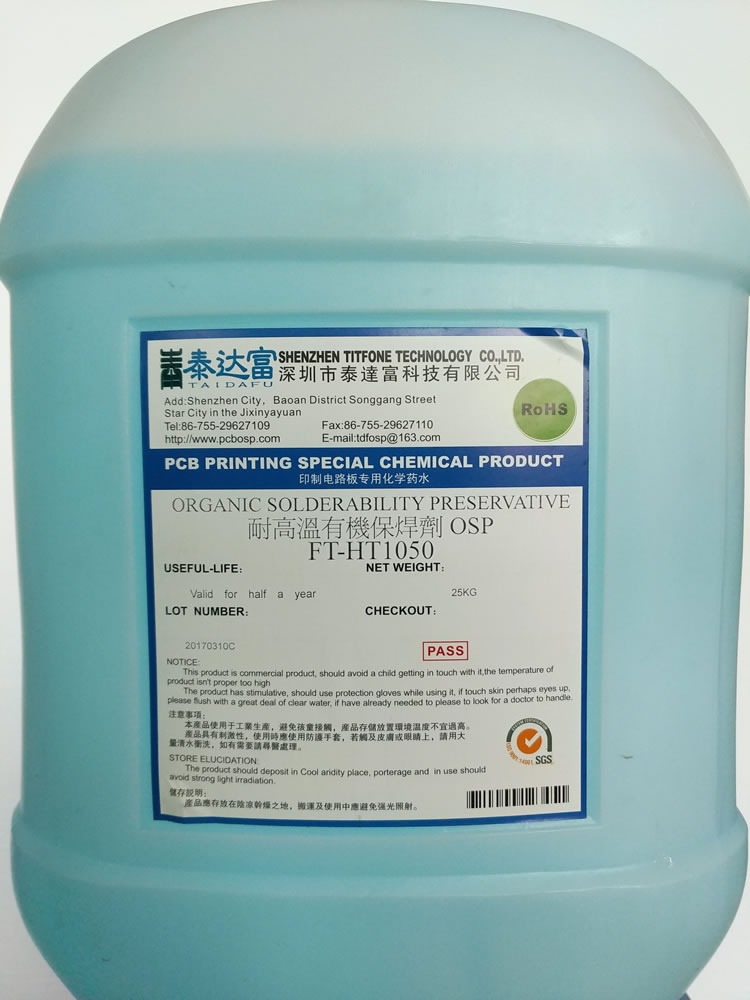 主頁 > 產(chǎn)品展示 > OSP藥水系列 > 多次耐熱可焊PCB銅面有機(jī)防氧化劑FT-HT1050